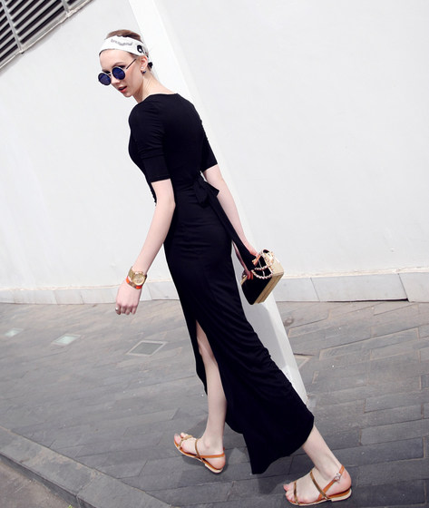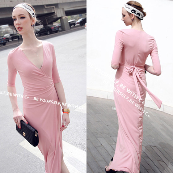 Online Red Spring Autumn New European Station Beauty Sexy Nightclub to fix Modale's body with a fork long skirt chic