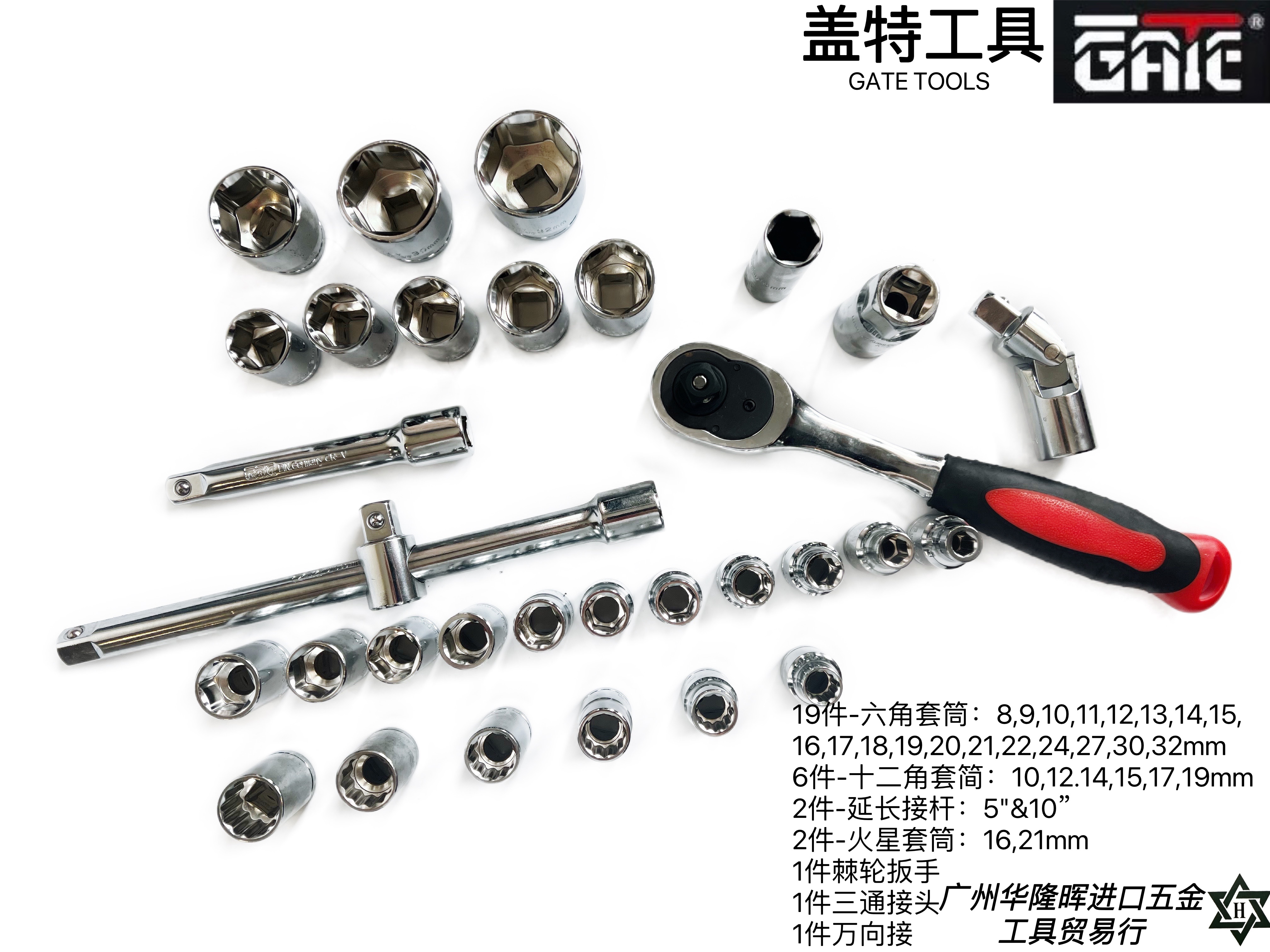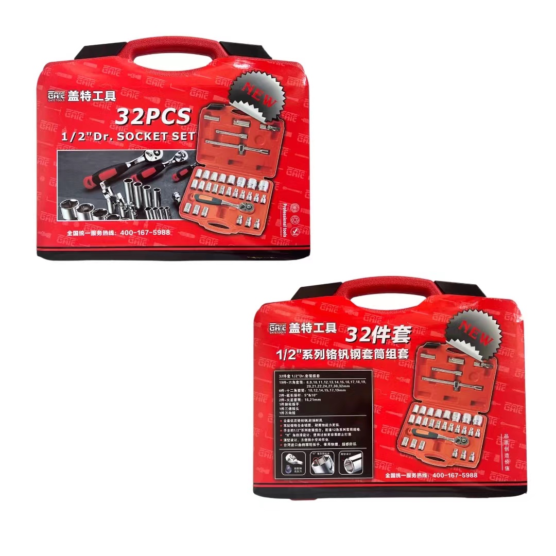 Guette 32 pieces of steam repair combined tool suit 1 2 ratchet sleeve wrench machine repair hardware steam repair tool sleeve