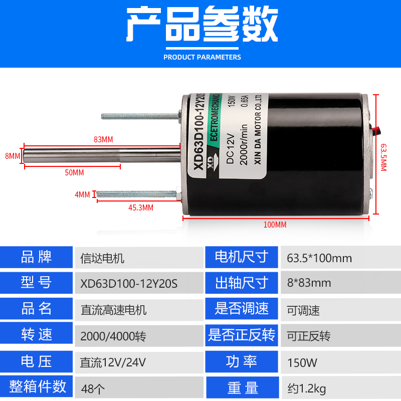 Xinda 12V24V DC high-speed motor 150W high-power, high-torque small motor forward and reverse speed regulating motor