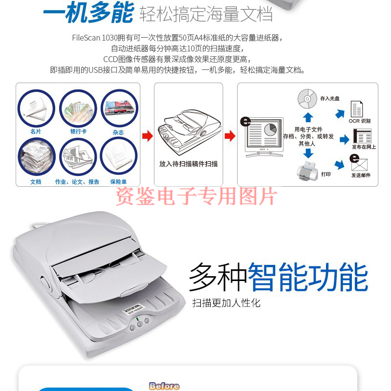 Medium crystal FS1030 scanning instrument A4 format high-definition high-speed file automatic in-paper character recognition text-text batch