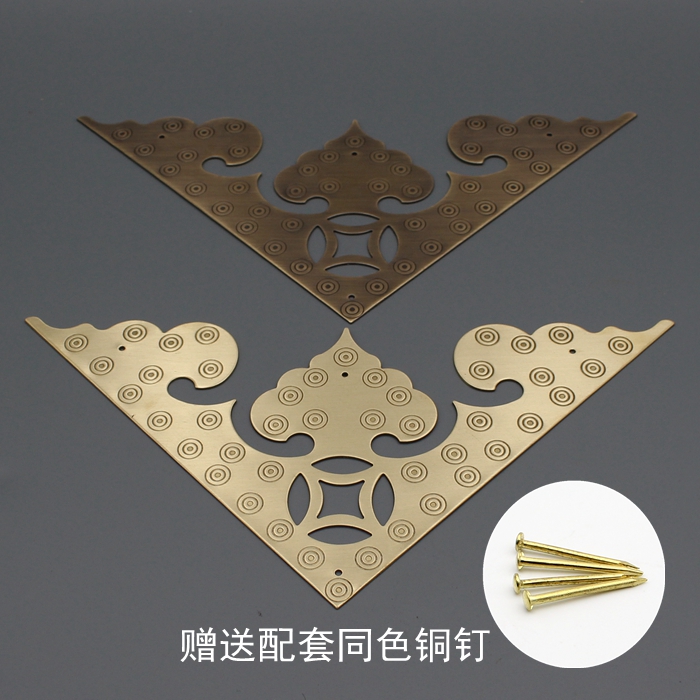 Chinese antique pure copper wrapped corner wooden door copper corner guard door corner piece corner flower copper accessories retro corner code large bronze