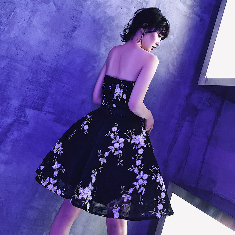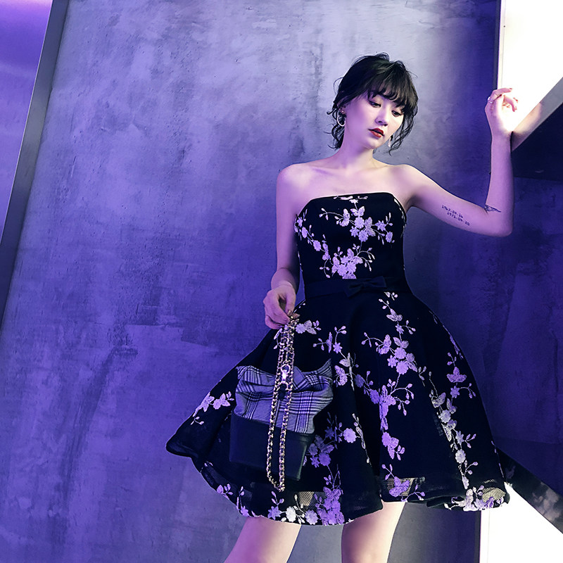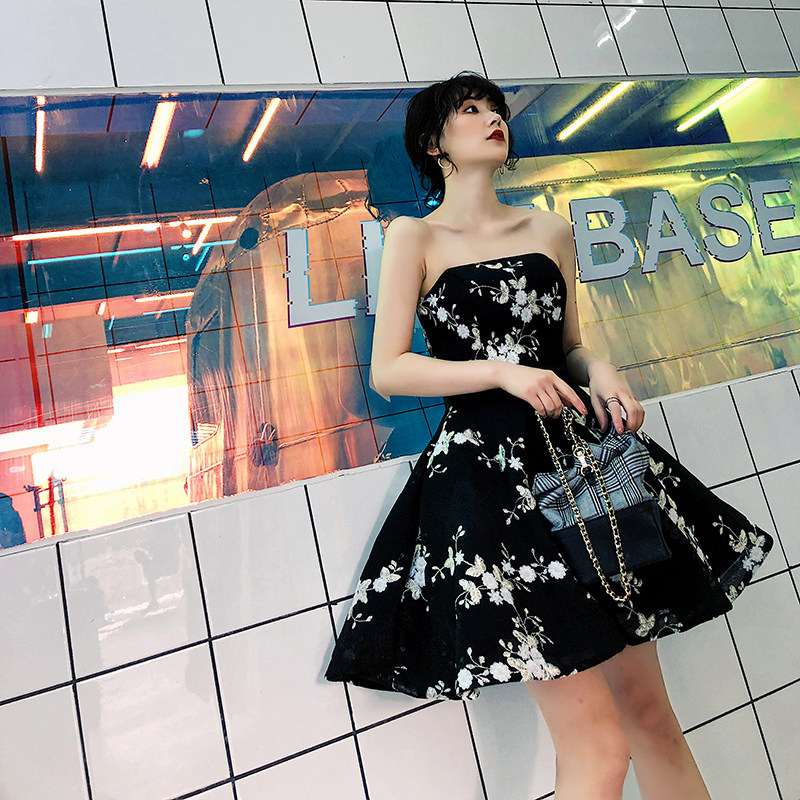 Tube top evening dress 2022 new black embroidery slimming banquet birthday party performance dress female short