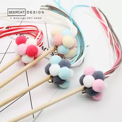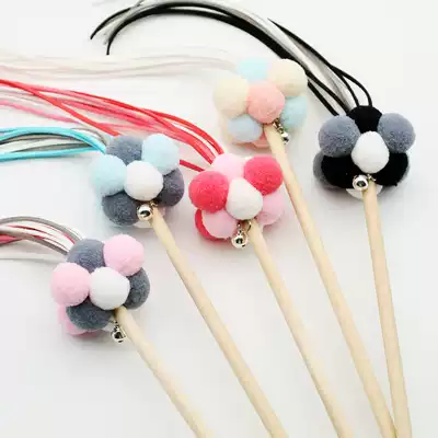 Small color cat handmade pet cat stick long rod hairball tassel cat toy Bell cat toy Bell cat artifact fairy stick