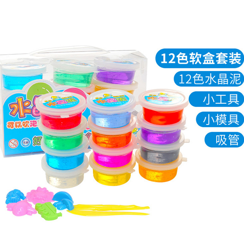 Crystal crystal 12 color crystal mud can blow bubble children's puzzle non - toxic and safe jelly mud pull king