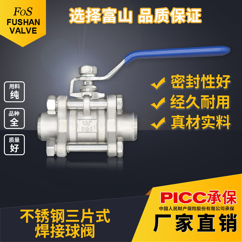 Stainless steel ball valve 304 three-piece type 4 points 6 points tap water switch type welding Shanghai Toyama valve