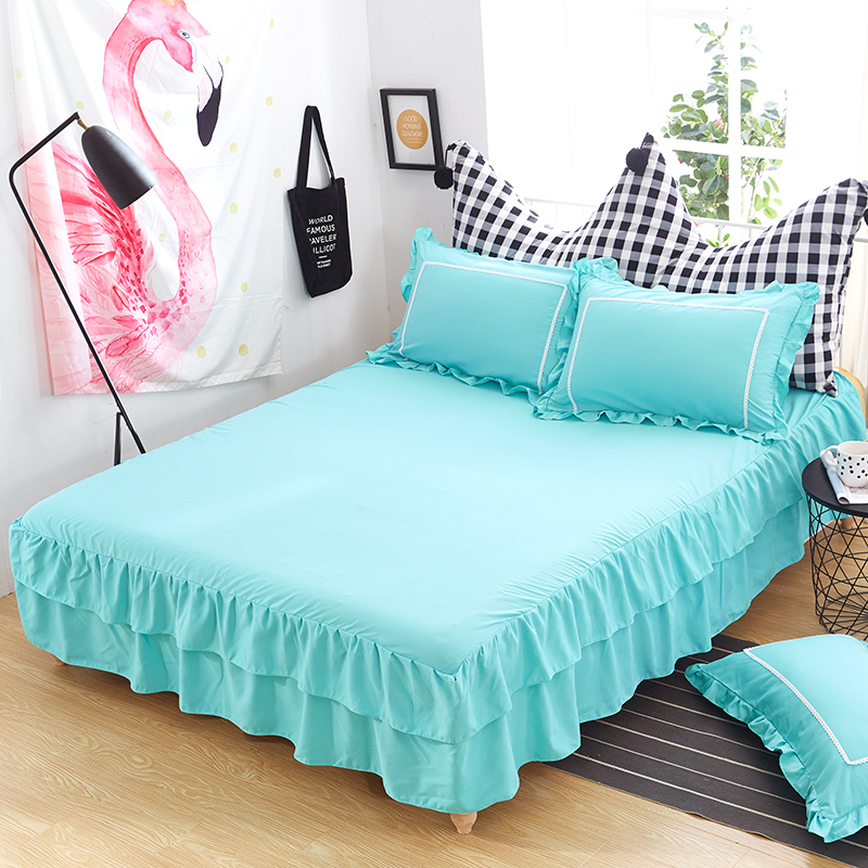 ins princess style polished plain color dress single piece macaron Pink Spring Lace sheet Simmons set bed cover