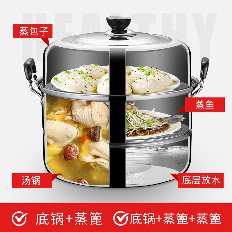 Thick stainless steel steamer home large capacity double-layer steaming extra large steamed steamer steamed steamer steamer steamed steamed steam