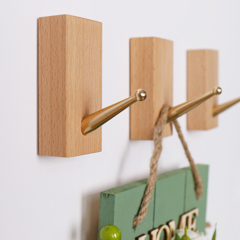 Nordic Solid Wood Hook Creative Hood Hook Door Rear Wall Wall-mounted Coat Hanger Genguan Free To Punch Clothes Wood Slime Hook