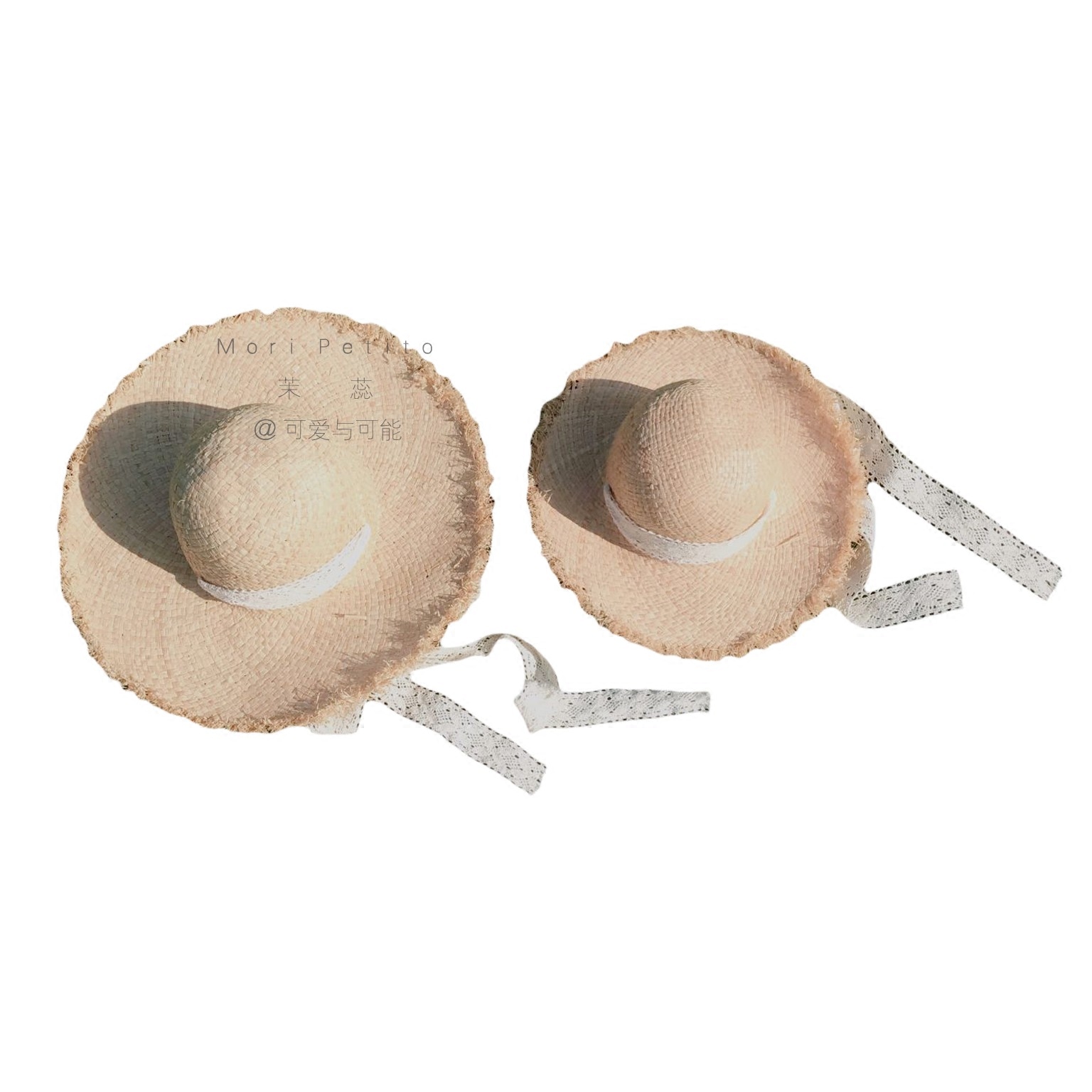 Children's straw hat holiday parent-child hat mother and girl straw hat female summer small fresh tie sweet and cute beach shade