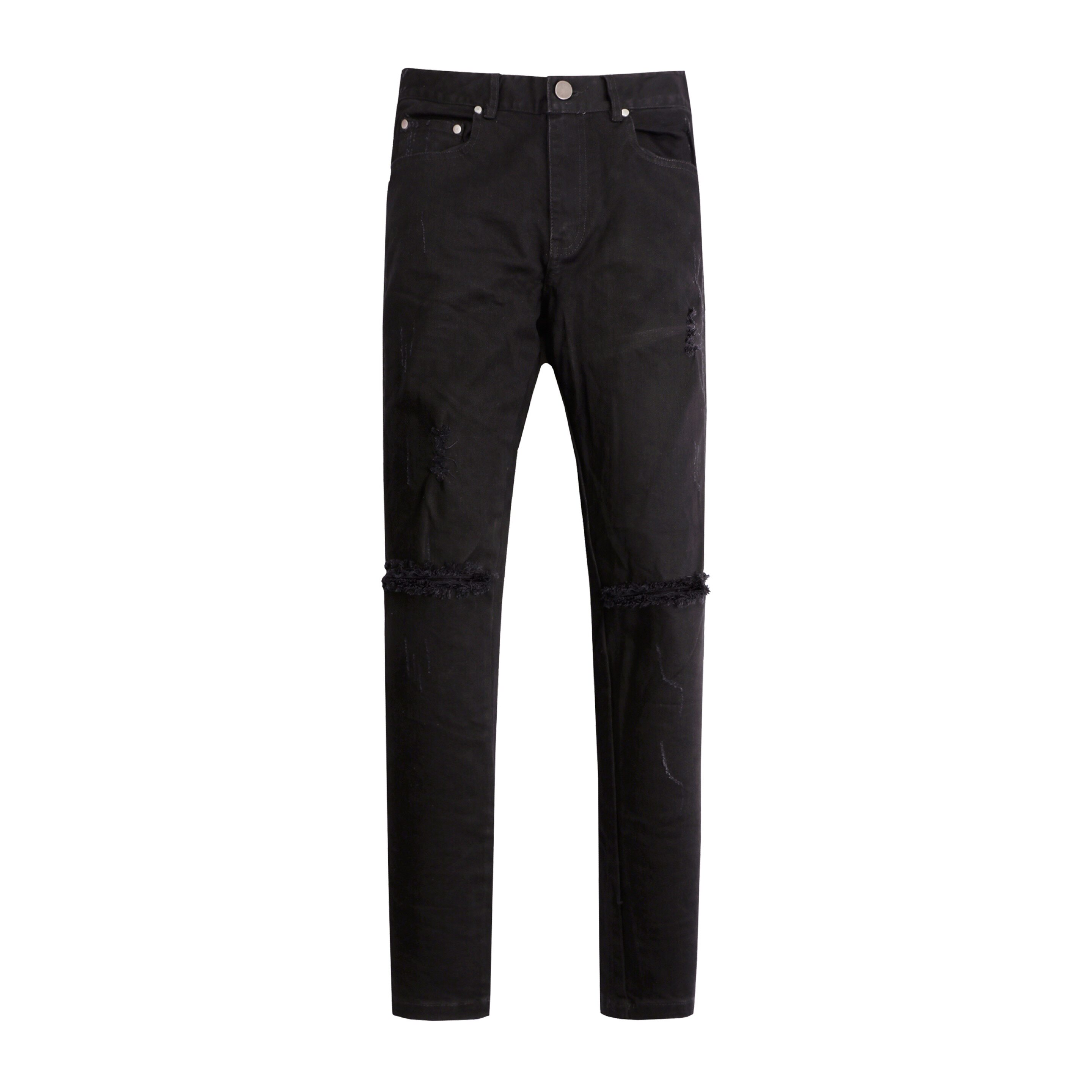 BONELESS WASHED OLD KNEE RIPPED JEANS MEN's BLACK KNIFE CUT TROUSERS HIGH STREET SUMMER SLIM FIT STRETCH