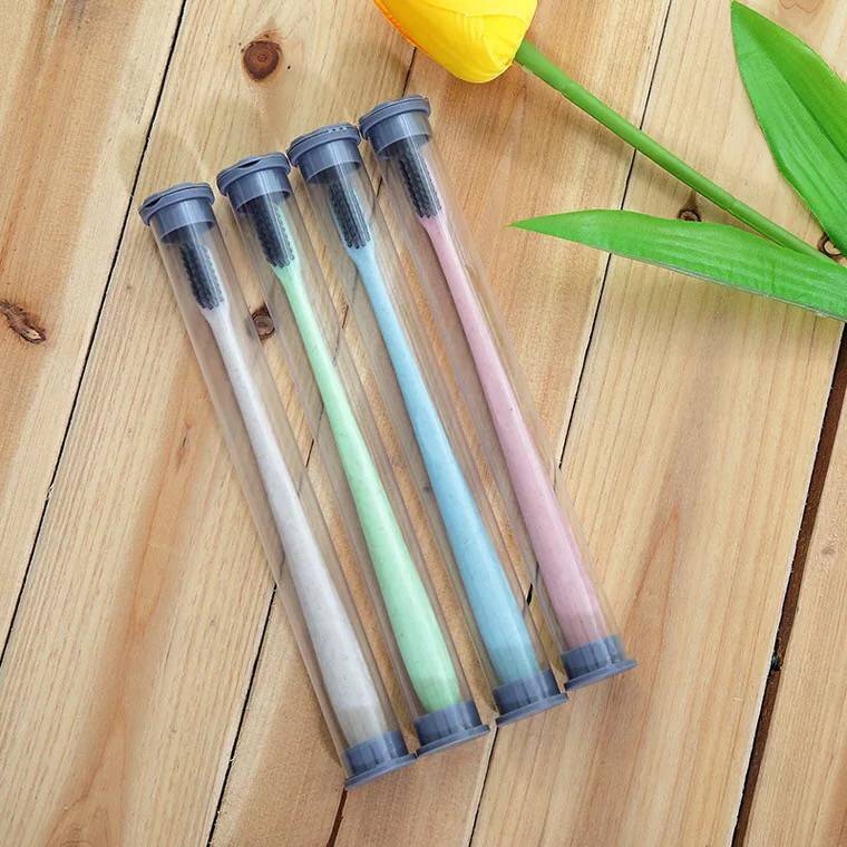 Daisy Beauty Wheat Straw Couple Toothbrush PVC Round Tube Packed Adult Soft Hair Small Head Bamboo Charcoal Toothbrush Factory Straight