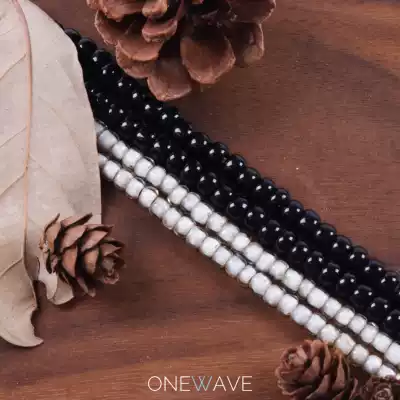 (Domestic spot) Japanese old glass beads whole string non-goros necklace black and white beads accessories