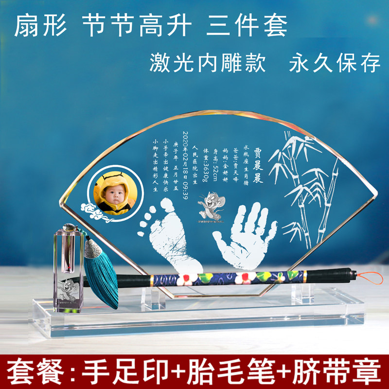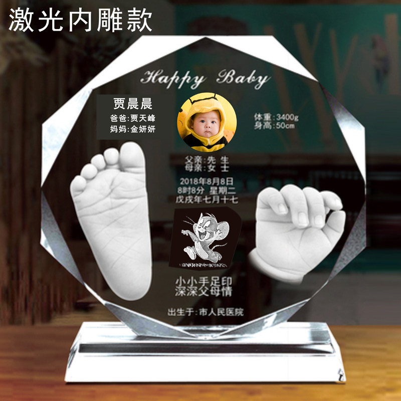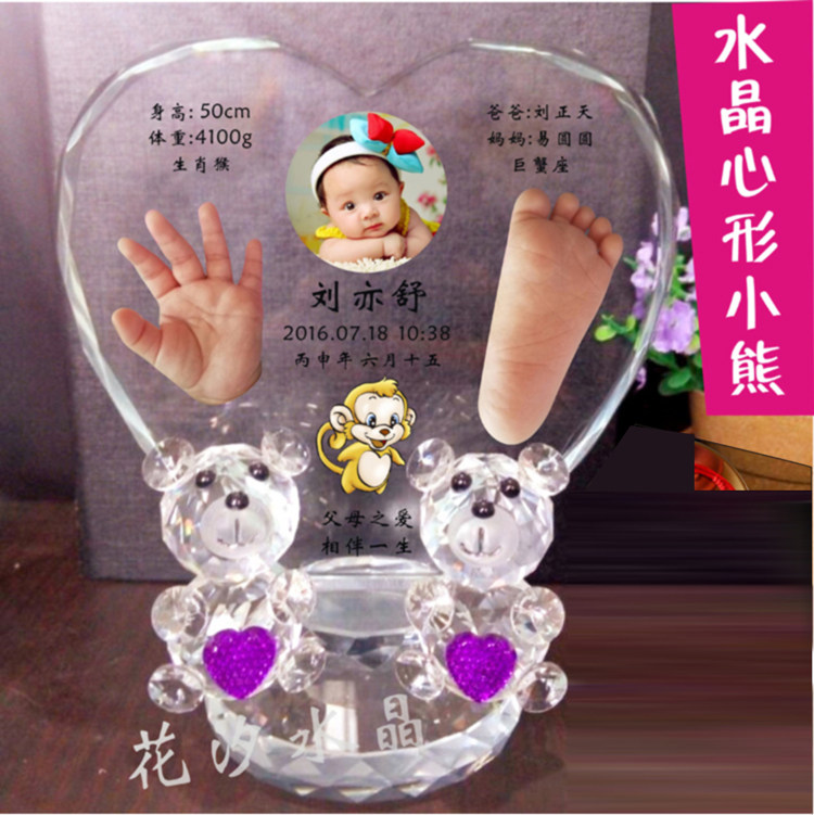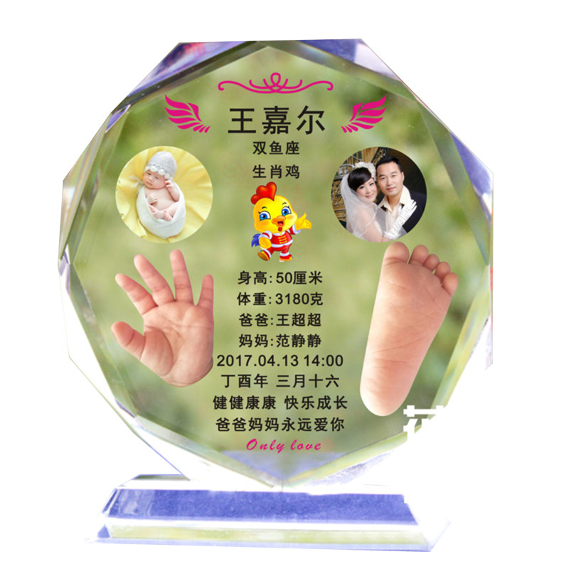 Newborn baby crystal table Baby hand and foot print souvenir full moon 100-day birthday hand and foot print gift