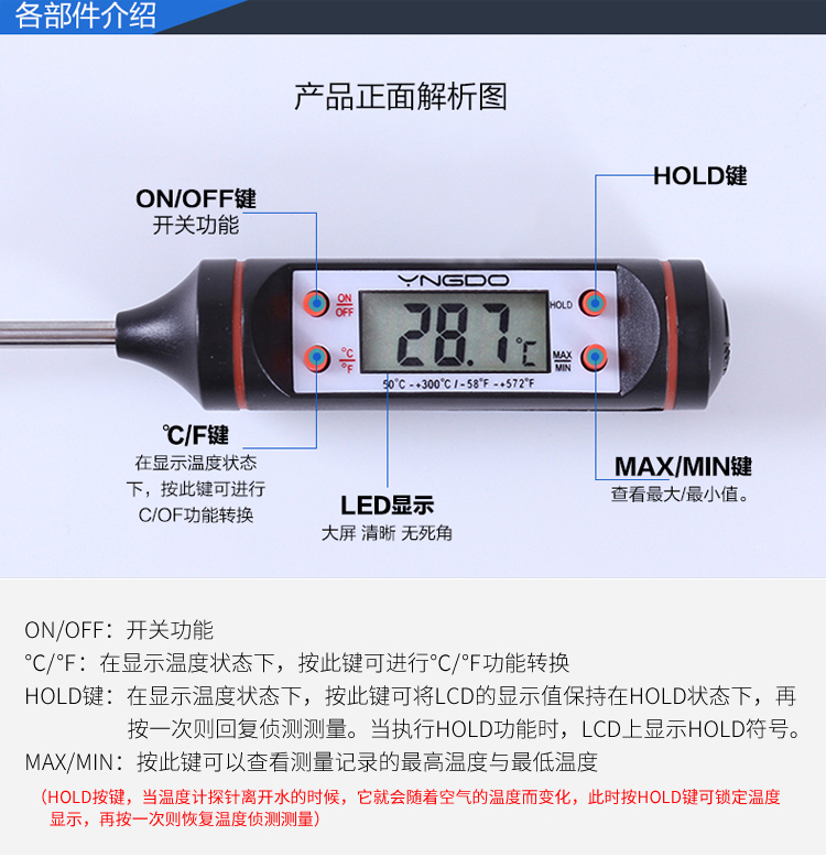 Kitchen food thermometer water temperature meter baked food electronic thermometer 304 stainless steel to measure food milk temperature