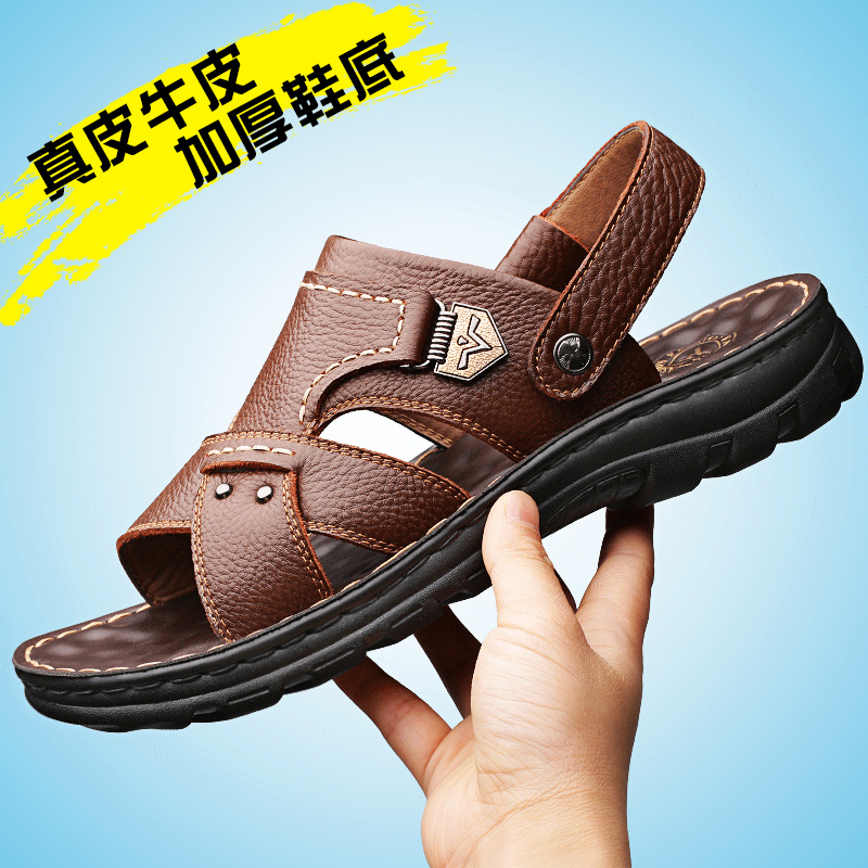 Men's sandals 2023 new summer men's wave casual Soft bottom genuine leather outdoor sandals for older dad beach shoes-Taobao