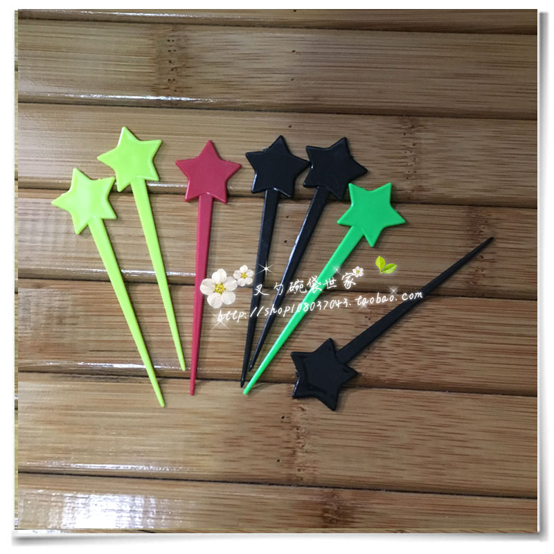Starfruit Needle Disposable Plastic Fruit Fork Colored Stars Fruit Needle Transparent Cake Fork Black Milk Cover Stick
