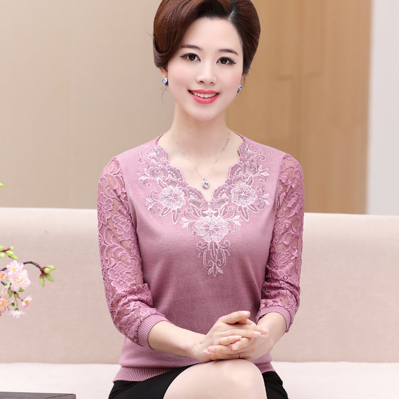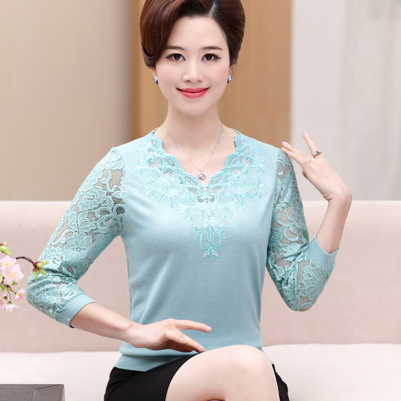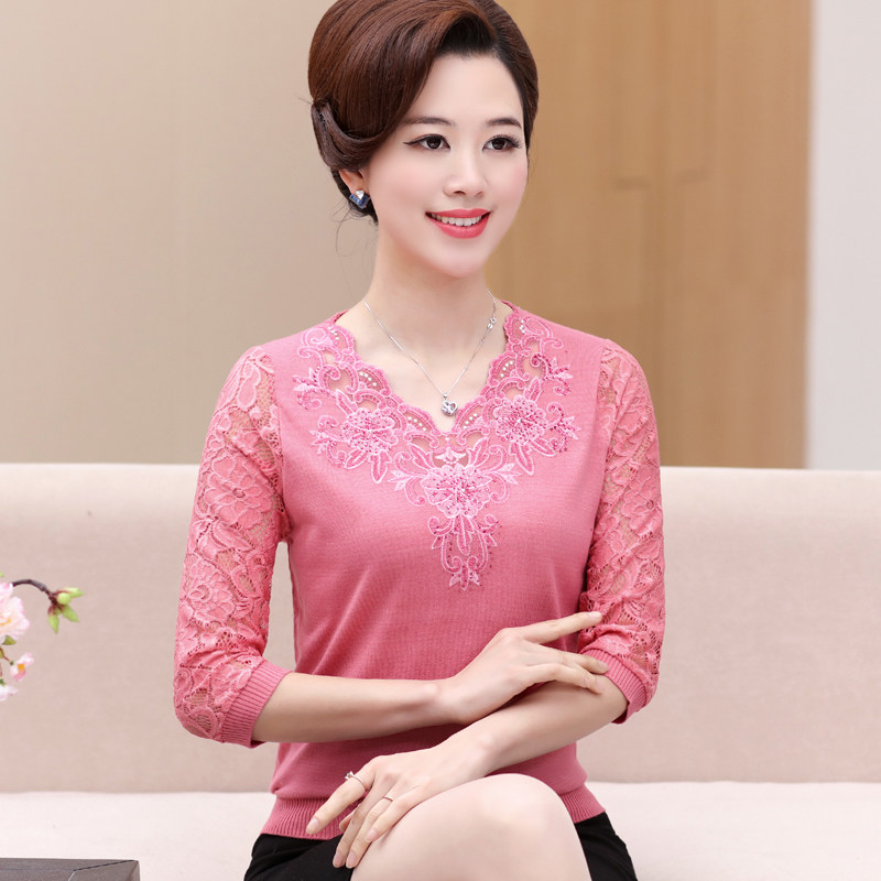 Middle-aged women spring top Mom autumn all-in-one base shirt T-shirt knitted three-point sleeve sleeve shirt 40 years old 50 years old 50 years old 50 years old 50 years old 50 years old 50 years old 50 years old 50 years old