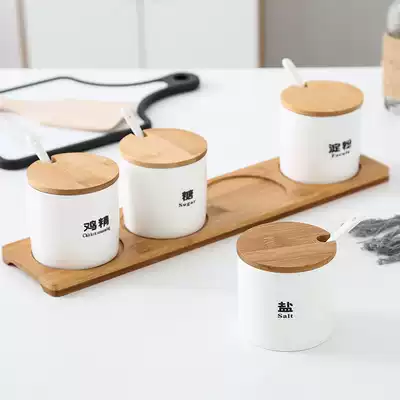 Emerald (pottery small) four-piece set-send label glass seasoning jar four-piece set (send label) ceramic seasoning jar four-piece set (send label) blue stripe (four-piece set) cyan stripe (four-piece set) White