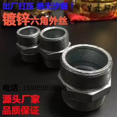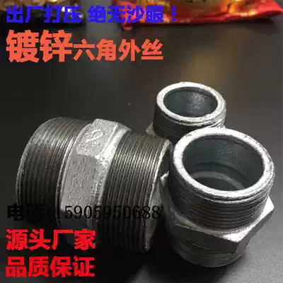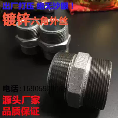 Galvanized steel fire pipe fittings, water pipes, double external teeth, direct double male screws, hexagonal quick connection, external wire inner joint 46 minutes 1 inch