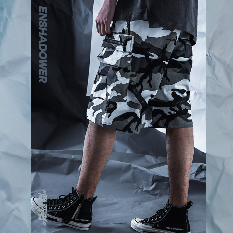 ENSHADOWER concealed multi-pocket function paratrooper shorts loose tooling snow ground camouflated 50% pants male tide