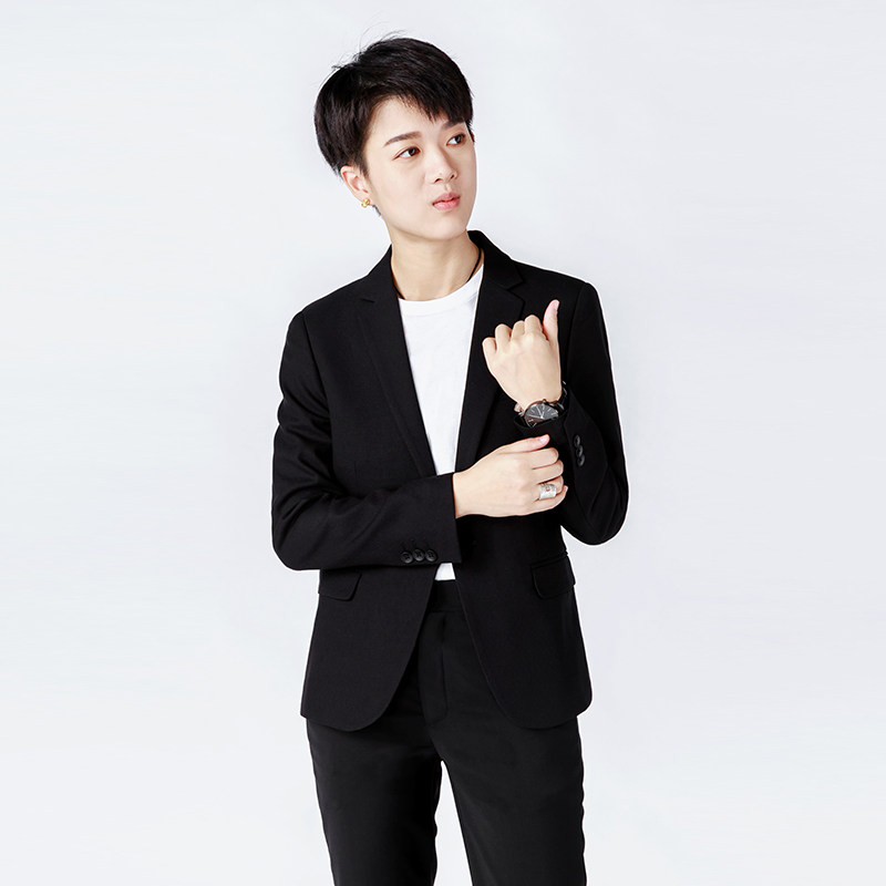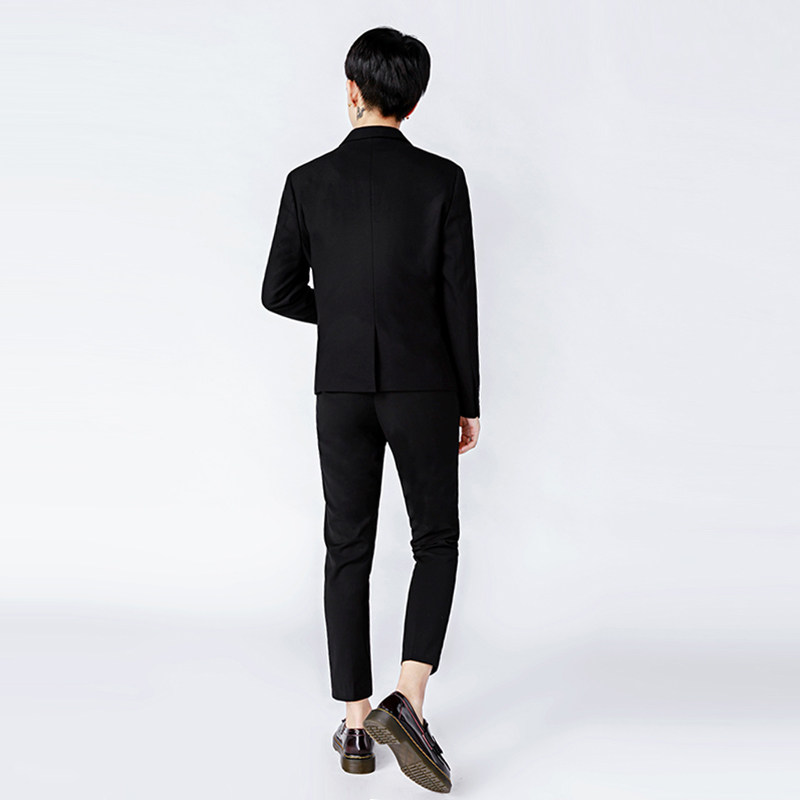 Slim small size men's and women's dress neutral les handsome T single suit XS size short black dress small suit jacket spring