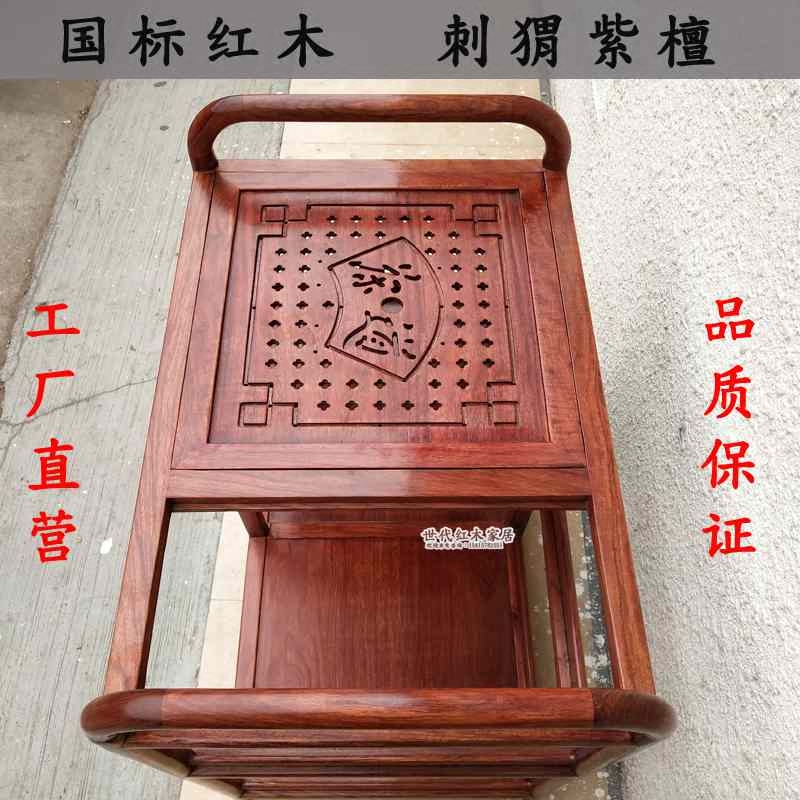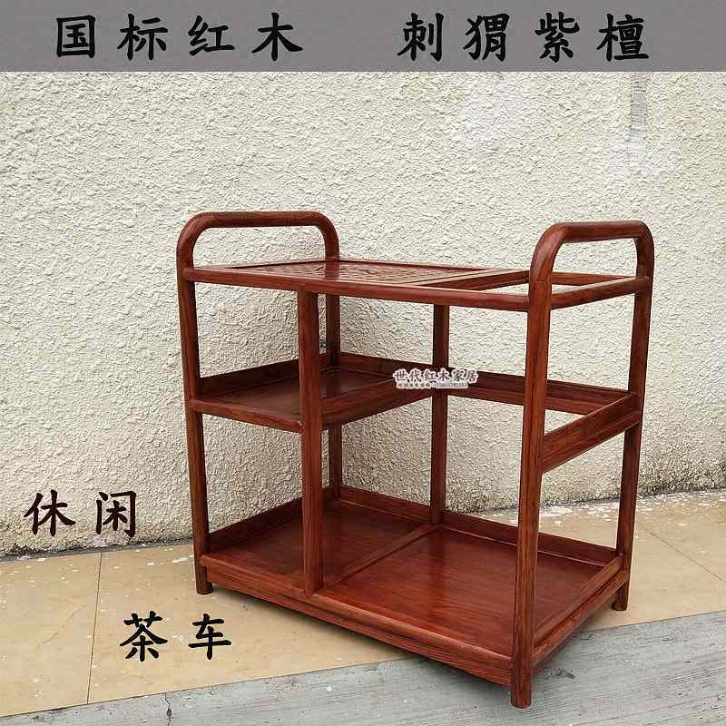 Red Wood Tea Table Hedgehog Purple Sandalongfu Tea Several Flowers Pears Wood Tea Car Tea Table Solid Wood Imitation Ancient Chinese Mobile Tea Water Shelf