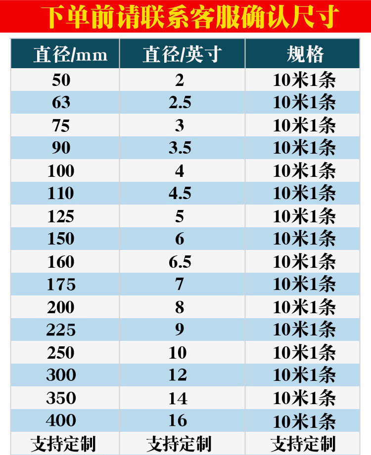 50mm*10mm 63mm*10mm 75mm*10mm 90mm*10mm 100mm*10mm 110mm*10mm 125mm*10mm 1