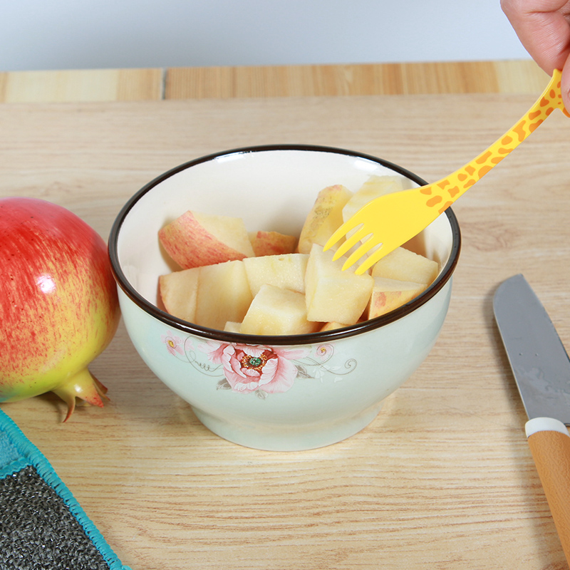 Cute Giraffe Fruit Fork Suit Creative Cartoon Animal Children Baby Home Safe Plastic Cake Fork