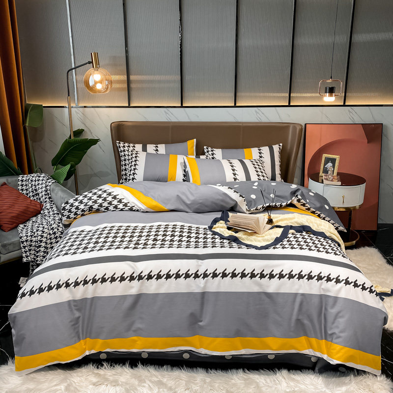 Nordic style cotton four-piece set naked sleeping cotton quilt cover bed sheet 200x230cm2 meter bed men's stripes simple