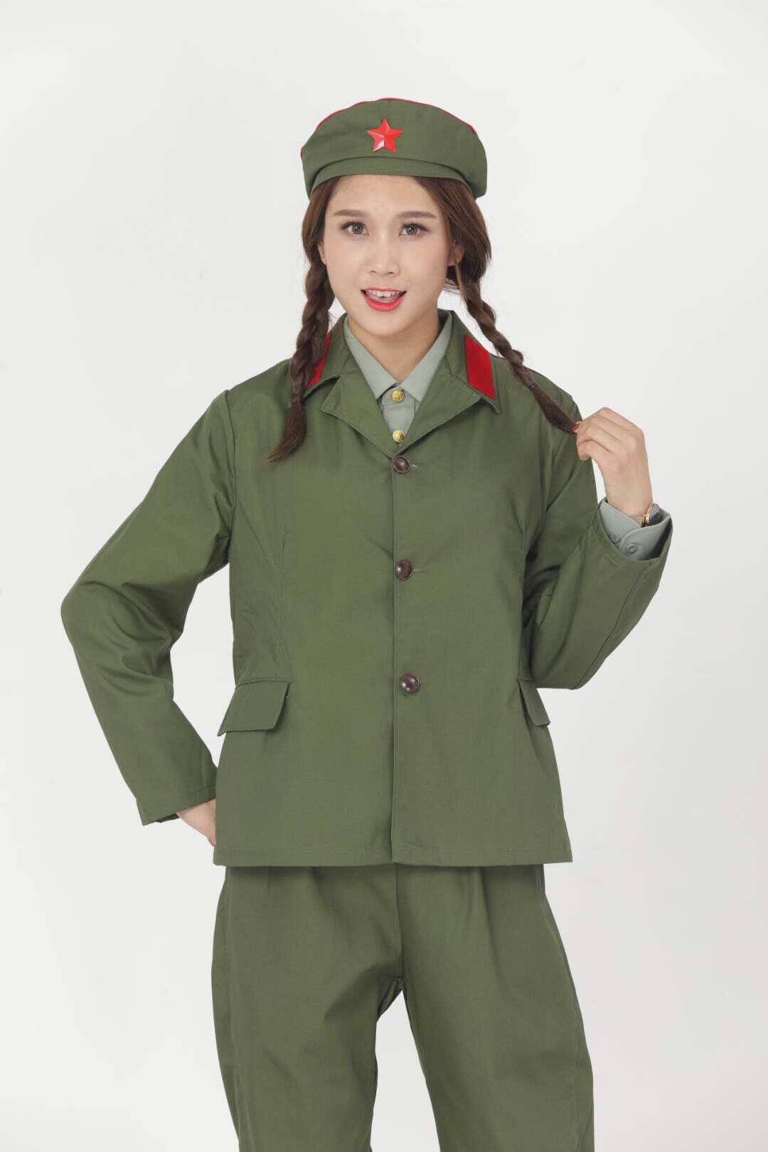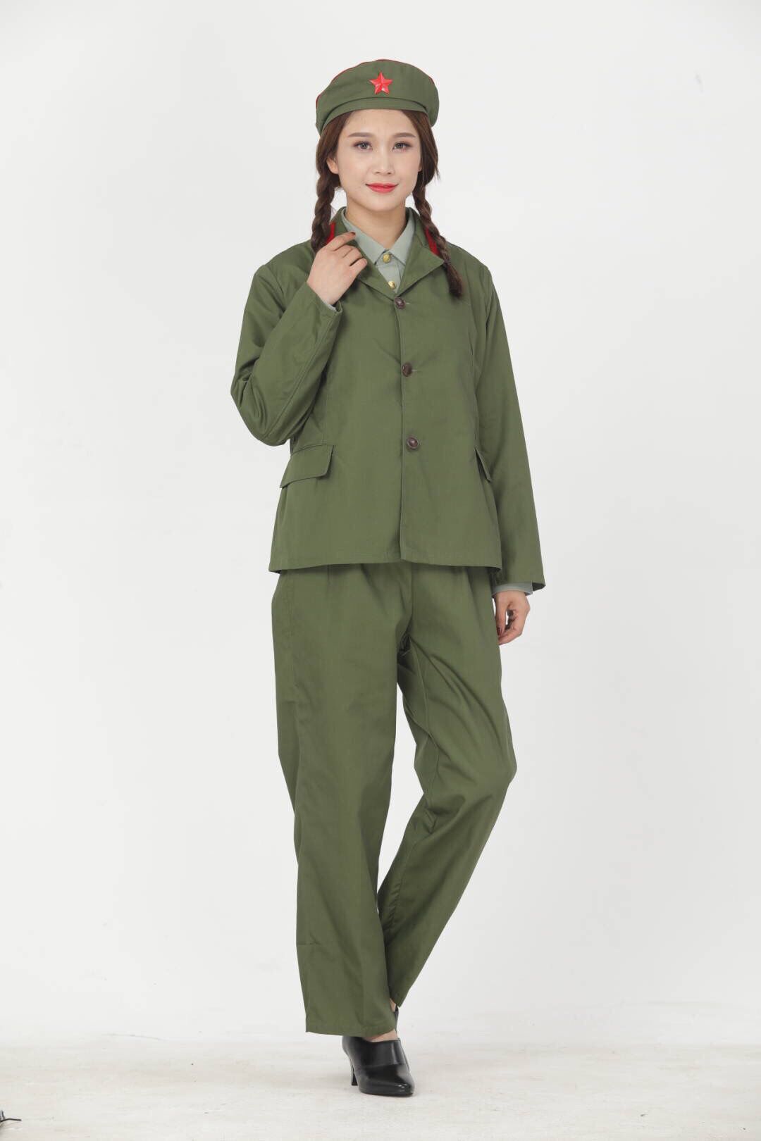 The 65-style old confirmed female soldier liberated the old military uniform Little turned up with big round hat army dry clothes Fang Hua same