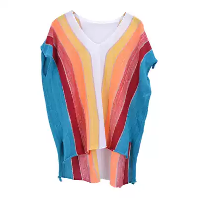 Seaside Holiday Rainbow Strip Knit Loose Large Size Swimsuit Outside Beach Sun Jacket Women's Bikini Blouse