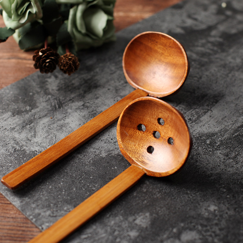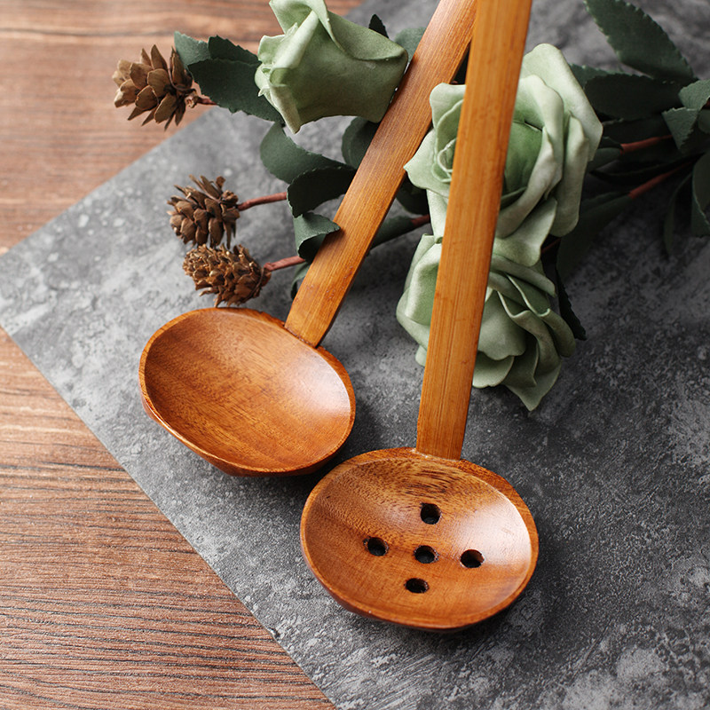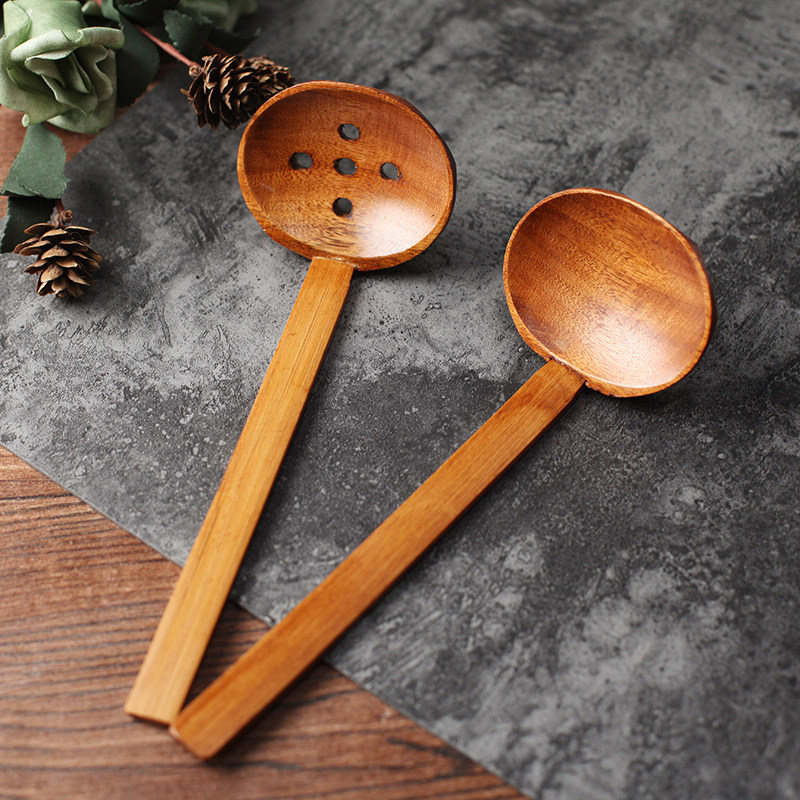 Clump Wood Taste one thousand Day Style Pull Face Spoon Bamboo Handle Wood Tortoise Chia Spoon Drink Soup Spoon Long Handle Hot Pot Spoon Straight Shank Spoon Wooden Spoon