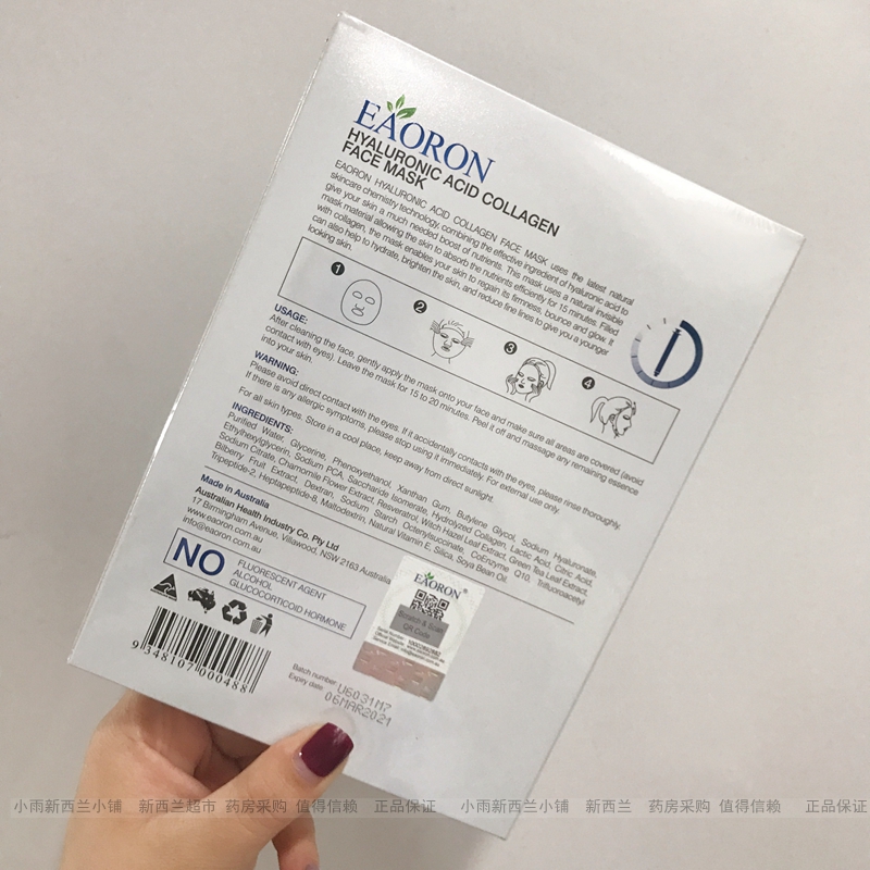 Australian EAORON MASK WATER LIGHT PIN COLLAGEN TENDER WHITE MOISTURIZING MOISTURIZING MASK