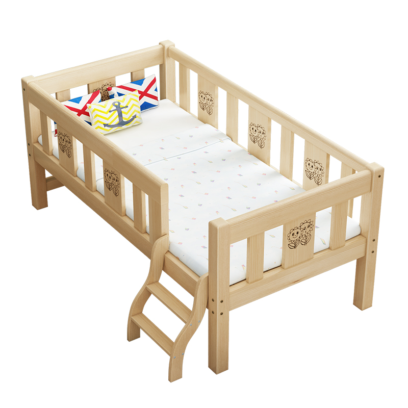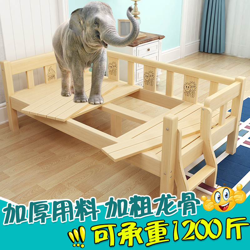 Solid wood children's bed with guardrail boys single bed girls princess bed baby widened cot baby splicing bed