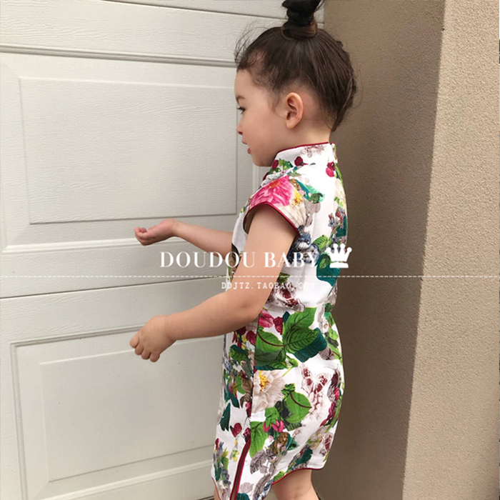 Female treasure cheongsam pure cotton linen short-sleeved Tang suit summer big children's dress girls improved cheongsam parent-child dress mother and daughter