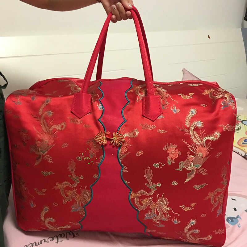 Big red marriage with a bag of quilt wedding quilt packing bags packed bags blankets packed
