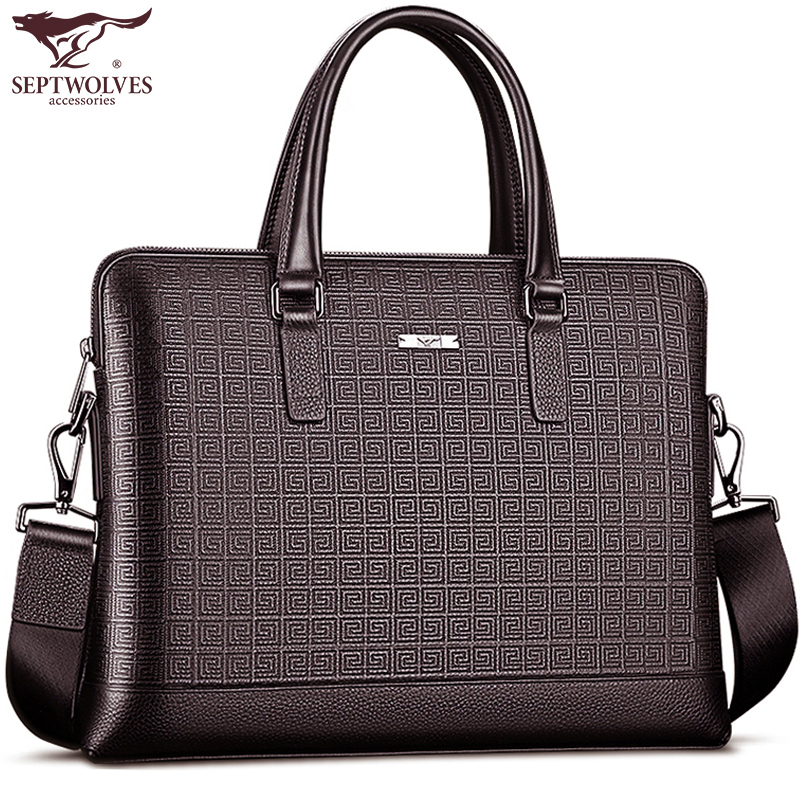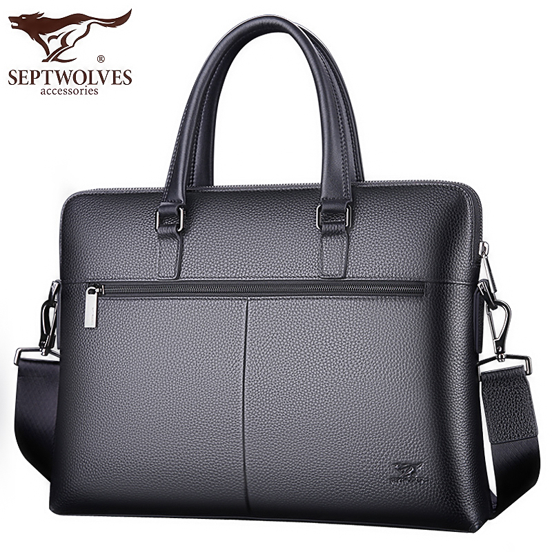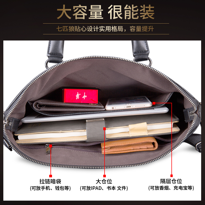 Seven Wolves Genuine Leather Briefcase Men's Slanted Satchel Bag Casual Head Layer Bull Leather Subcontractor Business Men's Handbag on a business trip