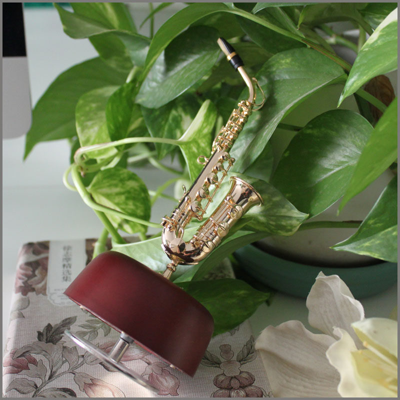 Mini Saxophone Music Rotary Model Music Box Desktop Swing Wooden Swing Accessories