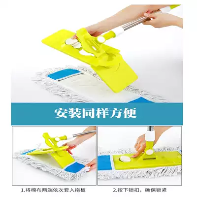 Mop flat cotton large telescopic disassembly and washing absorbent mop wiping floor and window dust removal mop waxing cloth head tarpaulin rotating god drag
