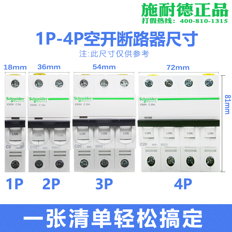 Schneider air switch circuit breaker A9 IC65N Small air open 1P 2P 3P 4P Household 10A~63A