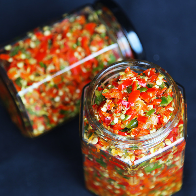 Garlic chili sauce oil-free double-color chopped chili pepper sauce spicy sauce super spicy garlic flavored chili sauce with rice noodles