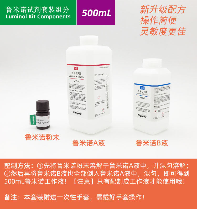 Rumino reagent suit Luminol luminous ammonia blood mark detection solution scientific research experimental teaching PHYGENE