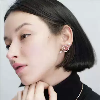 FEO Finland bamboo treasure circle pearl flash diamond earrings female temperament fashion ear needle female simple small elegant