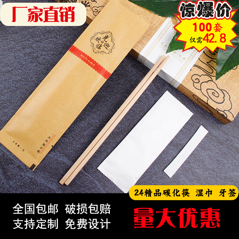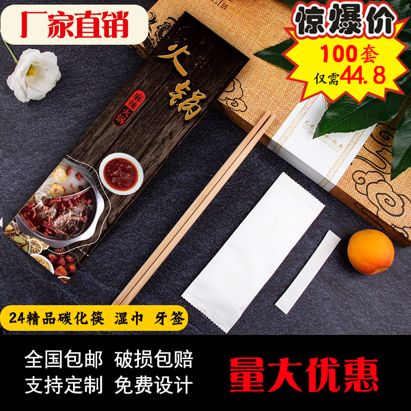 Disposable chopsticks 34 three or four sets of hot pot tableware restaurant special wedding takeaway home commercial extension carbonization