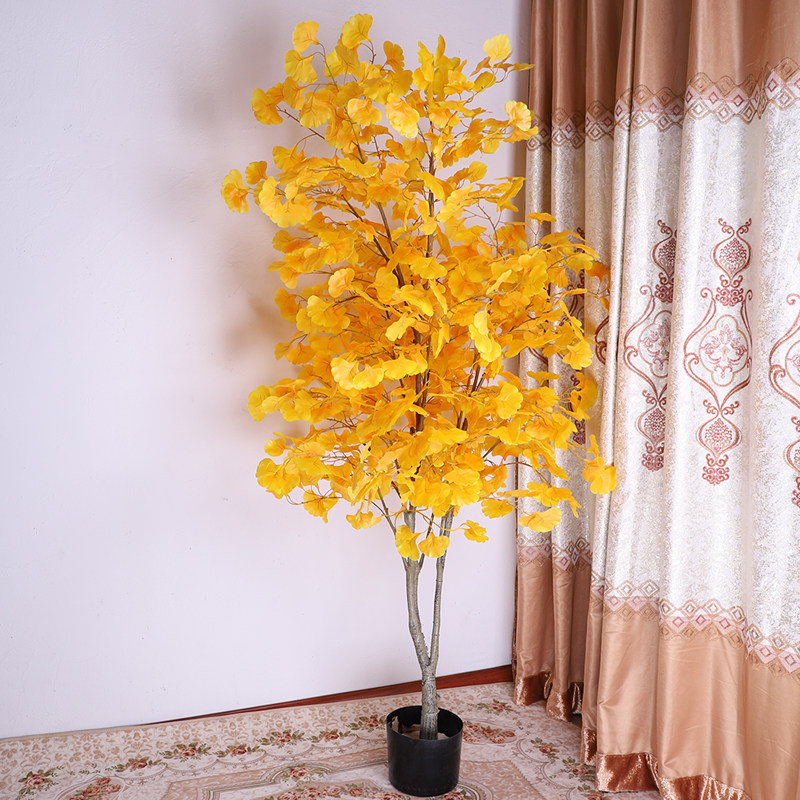 Simulation maple tree False red maple fruit tree Banyan tree Ginkgo tree potted fake tree Floor-to-ceiling living room decoration fake tree 2 meters high