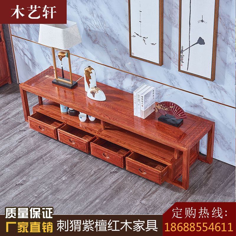 Red Wood TV Cabinet Flowers Pear Wood Living Room Group of the family with solid wood ground cabinet Hedgehog Purple Sandalwood Film Wall Manufacturer Direct