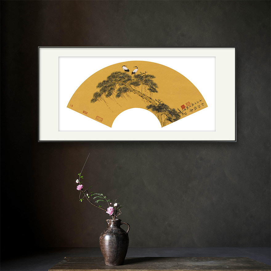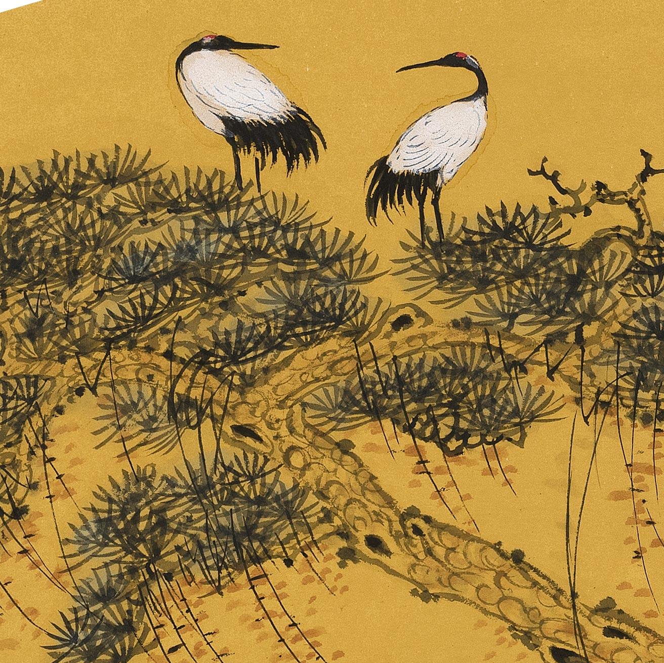 Wei Guan "Songling Aging Crane Sushi" Write a hand painted fairy crane pine fan noodle national painting Authentic Manuscript Auction Tea Room
