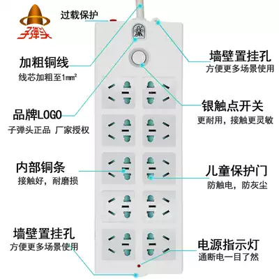 Bullet socket extension wire wiring board multi-hole plug row 026 022 024 wireless 3 5 meters with overload protection