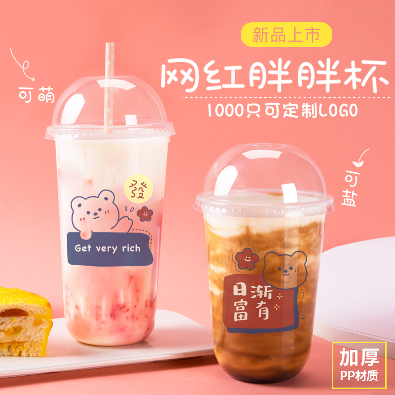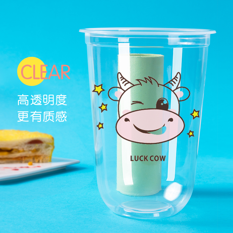 90 caliber one-time pearl milk tea cup drink cup transparent plastic u-shaped cake milkshake cup fat cup custom