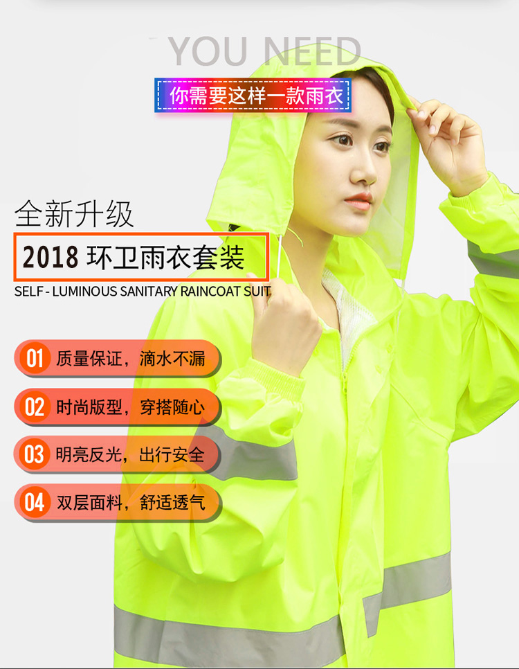 Orange two-piece suit with reflective strips raincoat road construction sanitation cleaners raincoat printing